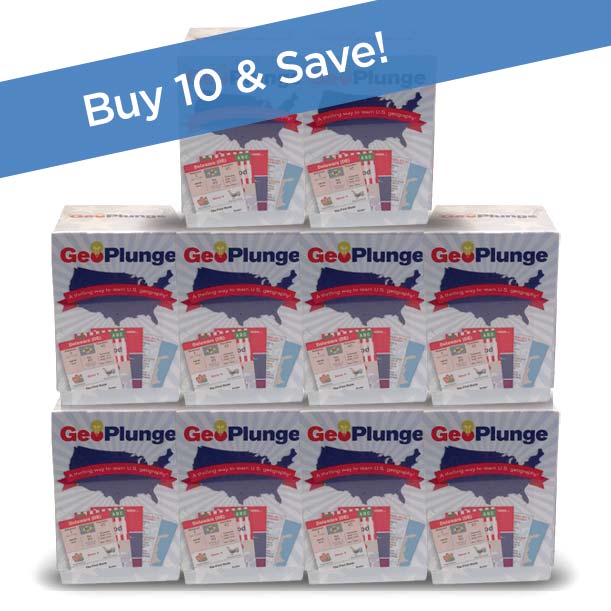 A case of 10 boxes of GeoPlunge is enough for a class of 30 students. It is also a great way to purchase gifts for all the geography buffs you know!