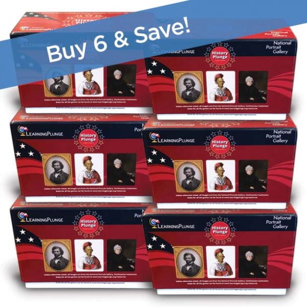 A case of six boxes of HistoryPlunge is enough for a class of 36 students. It is also a great way to purchase gifts for all the history buffs you know!